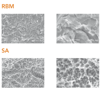Z Osstem SA metodo je morfologija površine in grobost povečana za 45% v primerjavi s RBM metodo.