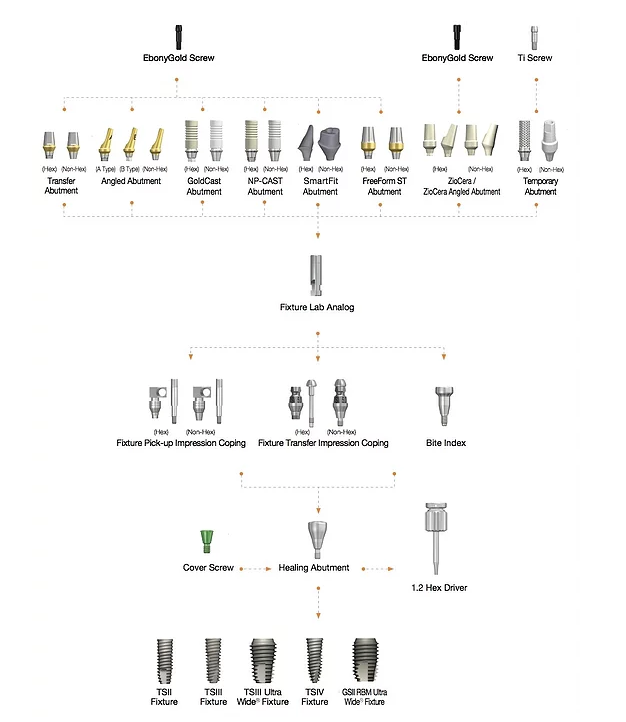 Diagram protetičnih nadgradenj za OSSTEM TS implantatni sistem sistem